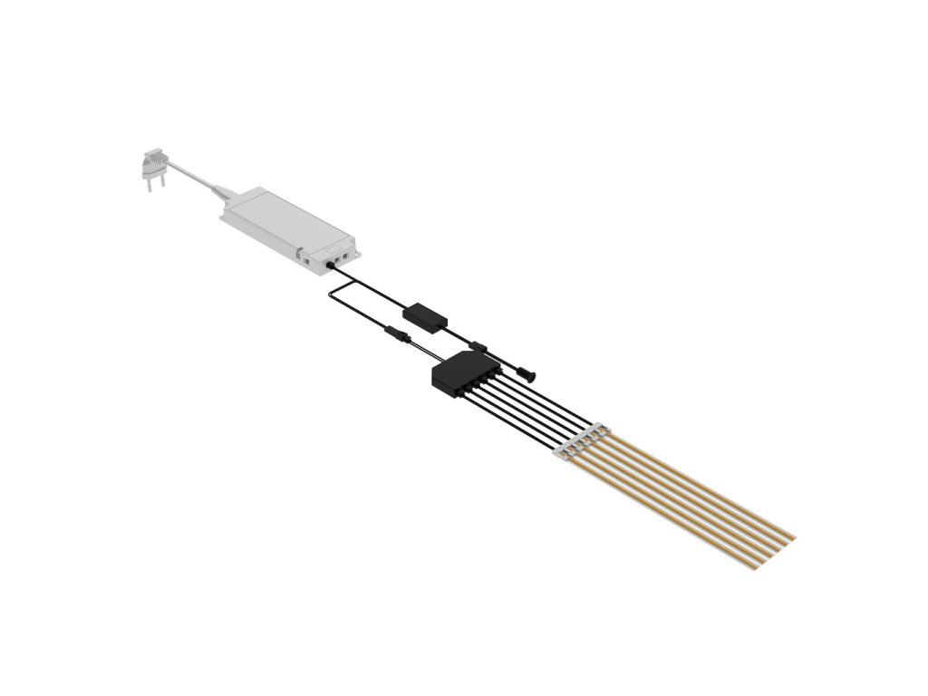 Tento distribuční kabel je navržen pro efektivní rozdělení kabeláže LED systémů – nabízí 1 vstup + 6 výstupů, všechny s Miniled konektory. Umožňuje snadné propojení více okruhů z jednoho zdroje bez nutnosti složitých spojek či pájení.