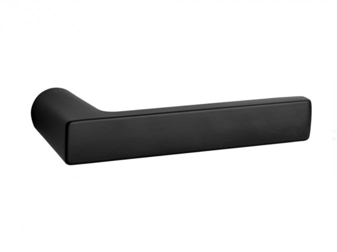 Dveřní klika bez rozety v černé povrchové úpravě. Díky tomu, že nemá spodní rozetu tak získává punc vizuální výjimečnosti.