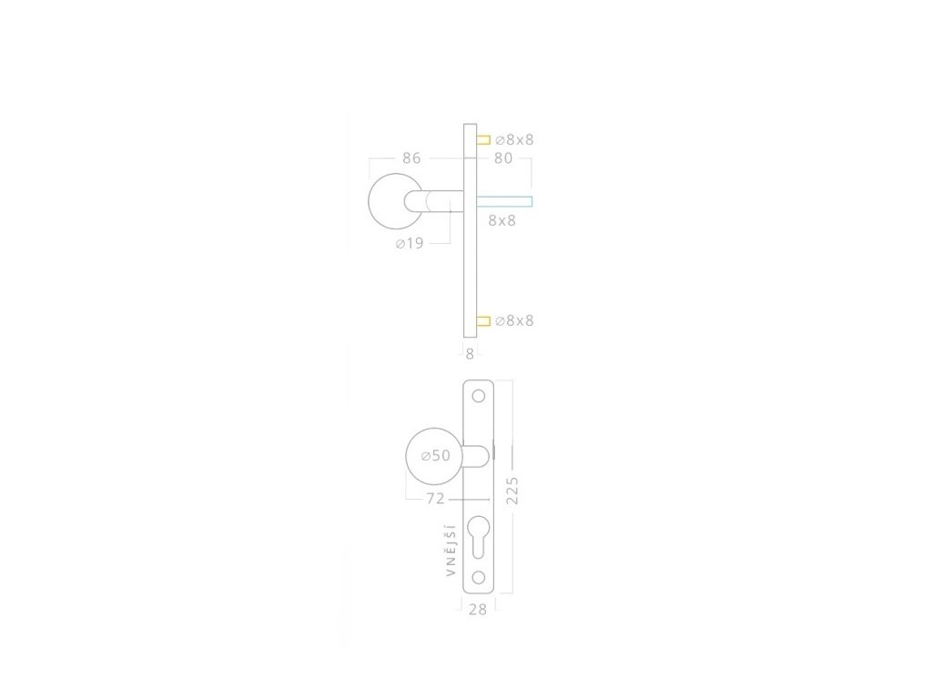| Dveřní kliky - upevnění kliky ke štítu | Volně |