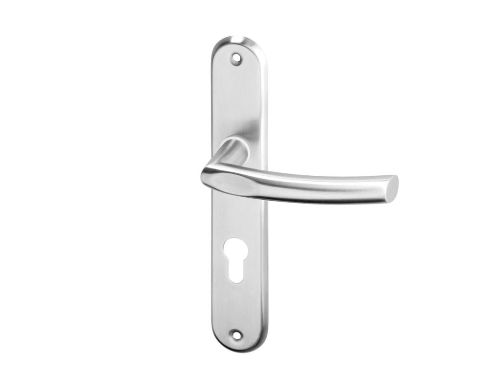 Moderní dveřní kování do interiéru - štítková klika oválná na dveře, materiál kliky je nerez AISI 304 s kvalitní nerezovou povrchovou úpravou. Rozteč 72 mm.