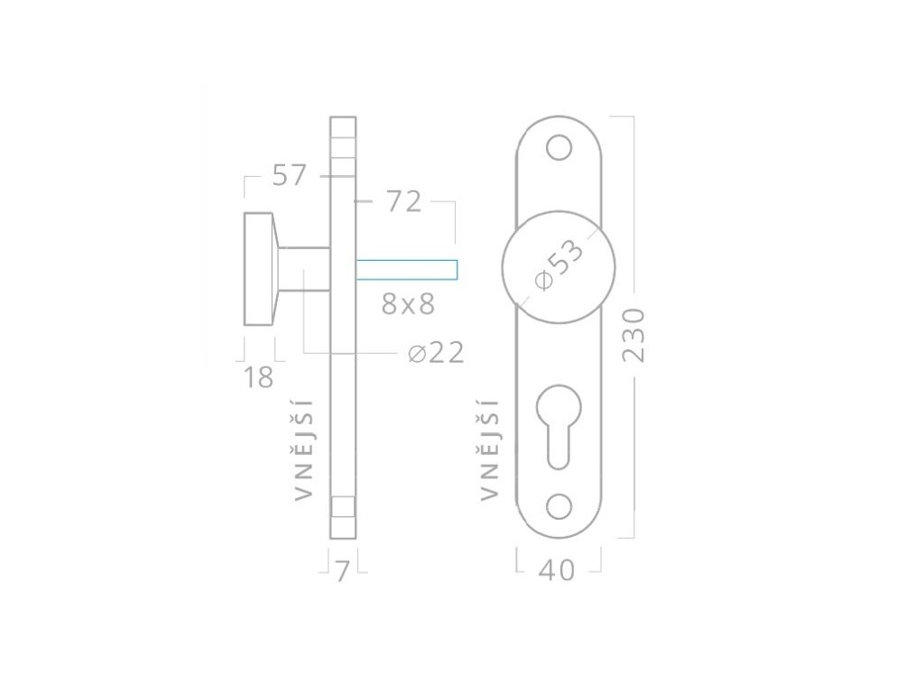 | Dveřní kliky - tvar rozety/štítu | Oválný štít |