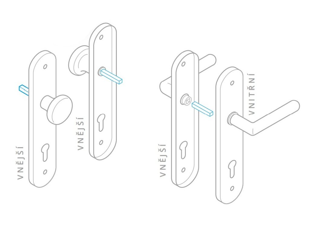 Dveřní kování je dostupné ve všech provedeních klíčů tedy PZ, BB, WC varianta.
