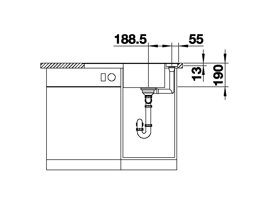 Jak správně změřit spodní skříňku, abyste věděli mezi jakými dřezy můžete vybírat? Pokusíme se Vám pomoci obrázkem vpravo. V parametru produktu pak máte u každého dřezu uvedeno jaká je minimální šířka skříňky pod dřezem. V této skříňce se velmi často umísťuji kuchyňské vestavné koše (sortéry). |