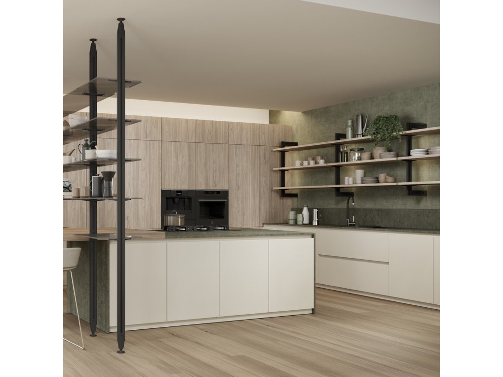 Montáž je jednoduchá, jediné co budete potřebovat je nářadí k přípravě otvorů, sloužících k ukotvení do podlahy, stropu nebo zdi. Samotný policový systém ZERO lze namontovat bez nářadí.