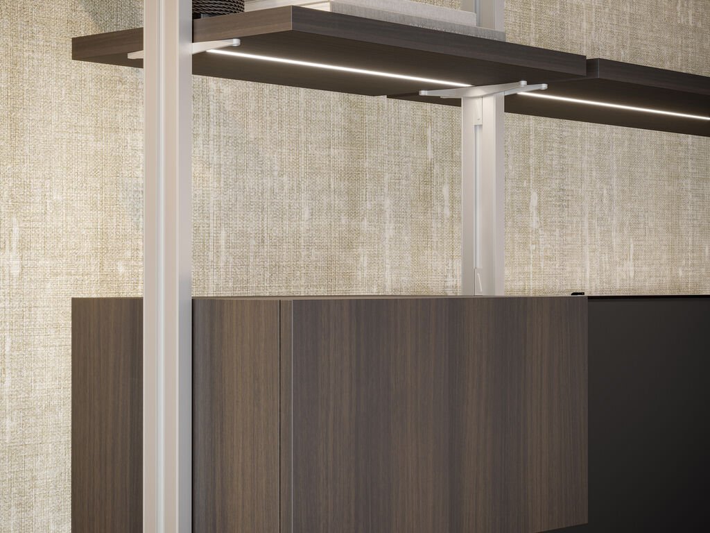 Montáž je jednoduchá, jediné co budete potřebovat je nářadí k přípravě otvorů, sloužících k ukotvení do podlahy, stropu nebo zdi. Samotný policový systém ZERO lze namontovat bez nářadí.