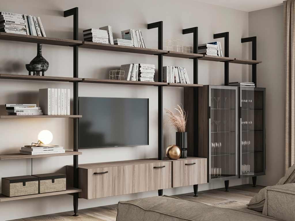 - police do obývacího pokoje, kde se dají uložit knihy nebo dekorace, zároveň může systém opticky rozdělit prostor