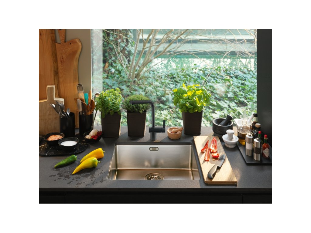 - Stylový vzhled Černá – perfektně ladí s granitovým nebo fragranitovým dřezem