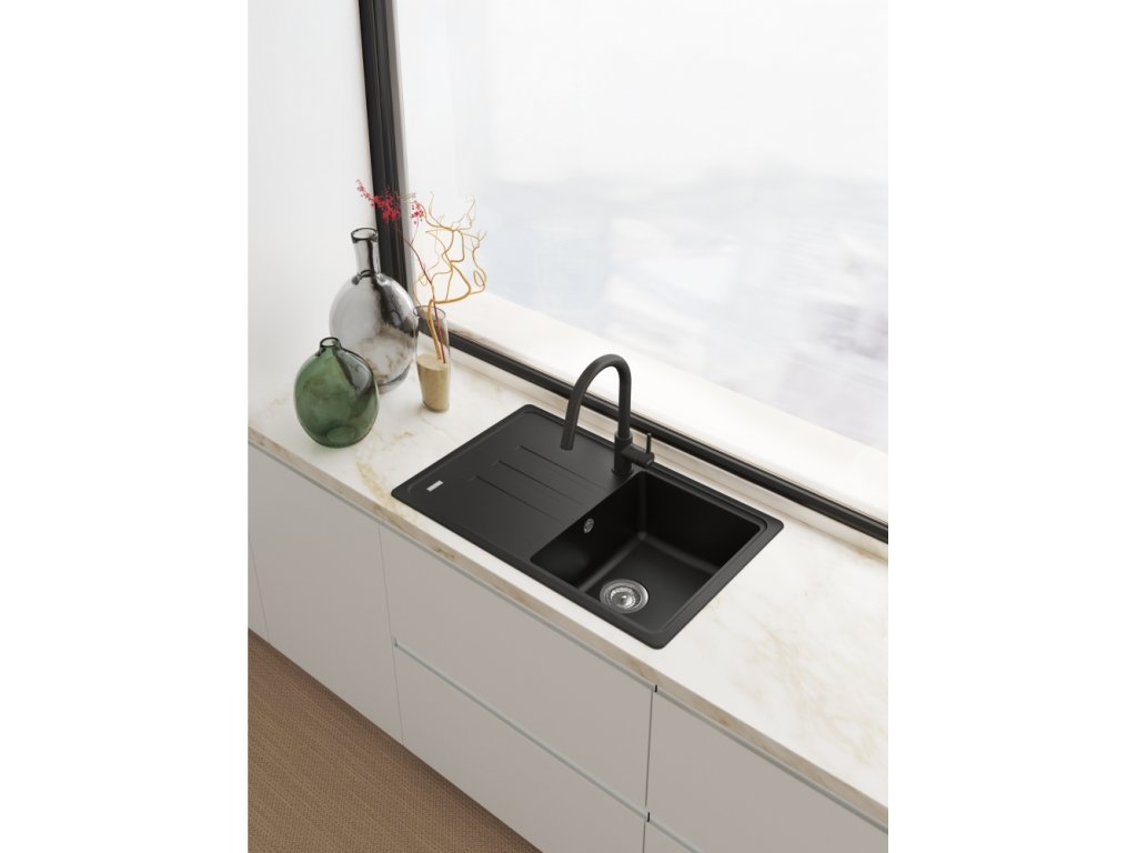 - Stylový granitový vzhled Matná černá – perfektně ladí s fragranitovým dřezem