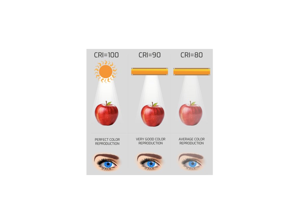 - ✔ Vysoké CRI ≥ 90 – věrné podání barev materiálů, dřeva, dekorů i potravin.