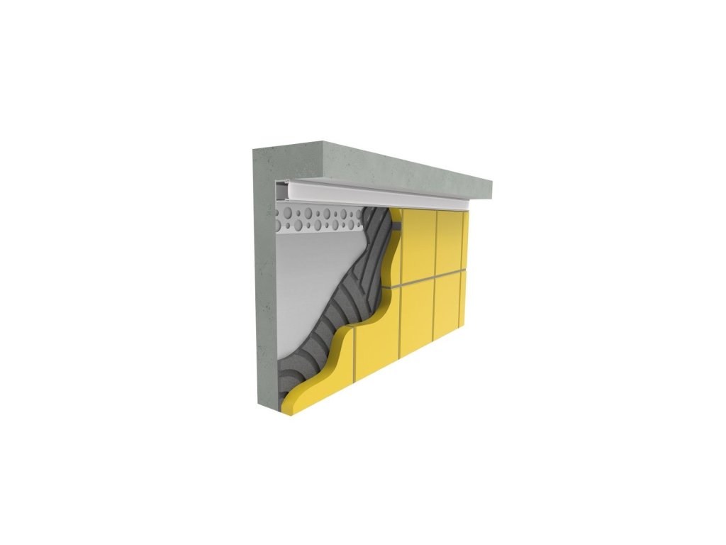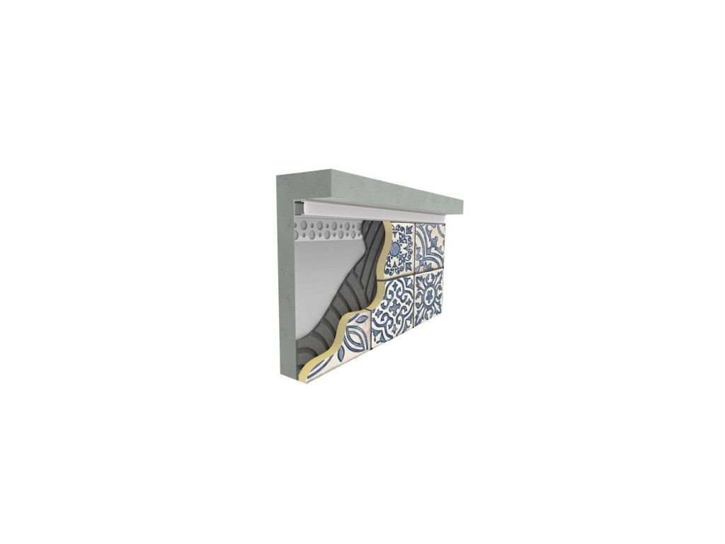 Okrajový profil pro instalaci na styku obkládaného povrchu stěny s hladkým rovným povrchem.