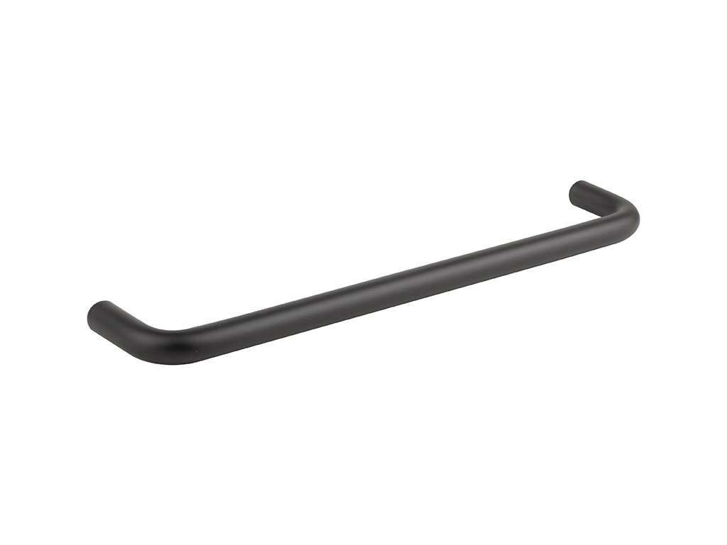 Moderní kovová úchytka s trendy povrchovou úpravou - strukturovaná černá matná. Tato barva vynikne zejména na dvířkách v dekoru dřeva, nicméně na světlých, univerzálních barvách se také neztratí. Skvělý kontrast k bílým dvířkám.