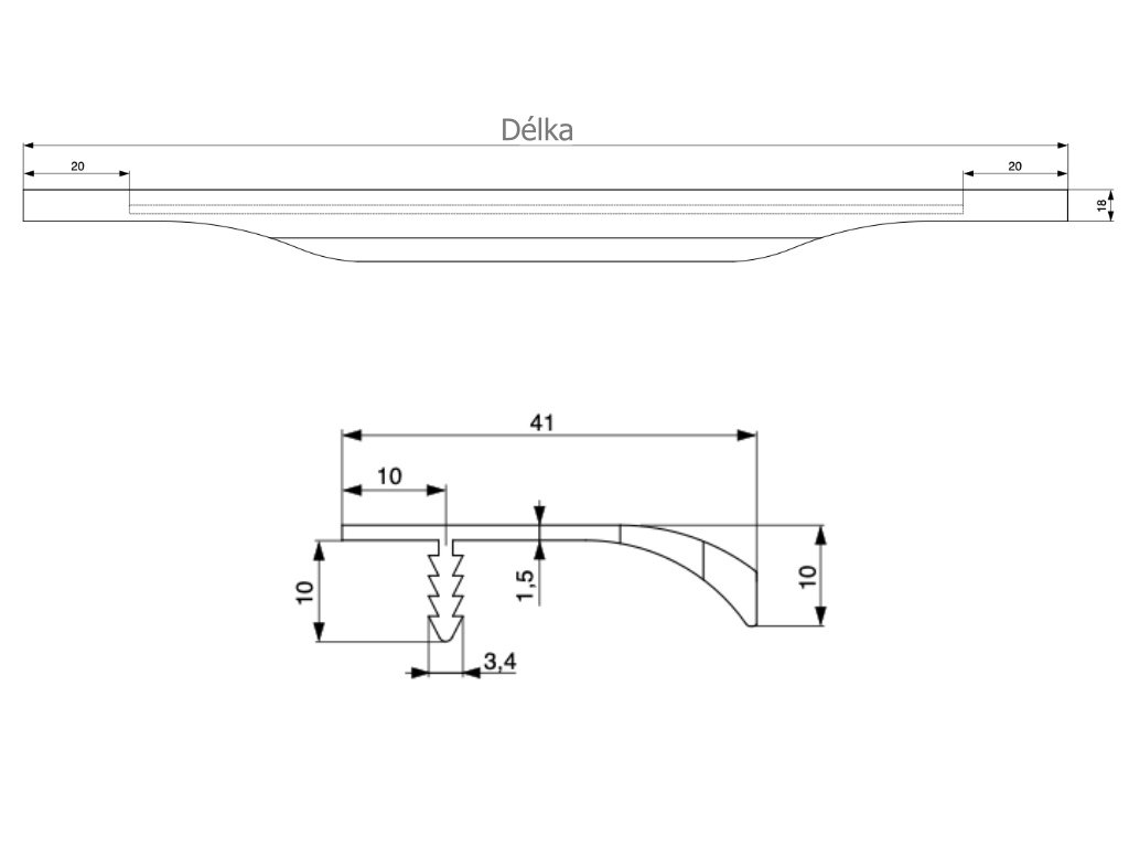- ✅ Skrytá montáž – úchytka je vsazena do drážky, takže nenarušuje čelo nábytku