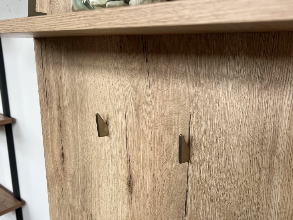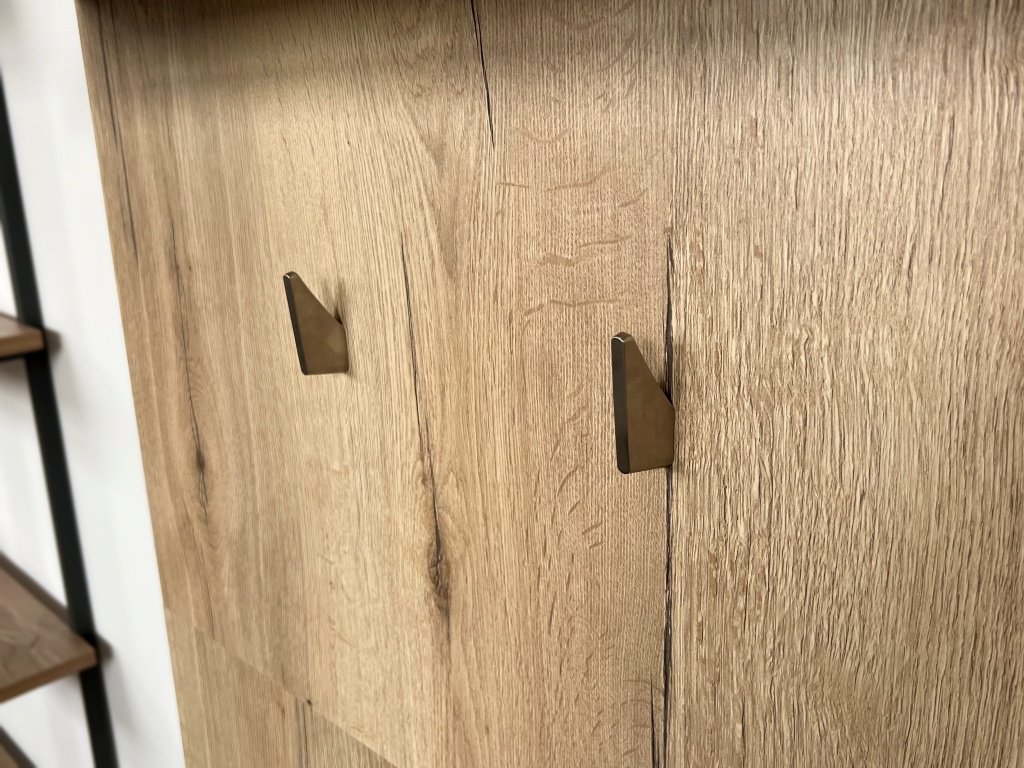 Moderní nábytkový věšák s velmi oblíbenou povrchovou úpravou - imitace nerez. Rozhodně zaujme svým čistým designem. Díky masivnímu tělu nábytkového věšáku, je vhodný i na těžší kabáty apod. Skvěle se hodí na bílé/světlé barvy nábytku. Na dřevo dekorech skvěle vypadá v kombinaci s dubem nebo jasanem. Ovšem padne i na další typy dřevin.