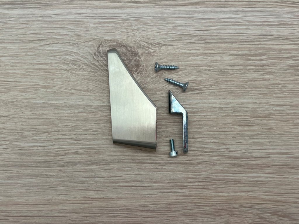 Součásti balení tohoto věšáku je i montážní materiál. Montuje se z přední strany a po utažení pojistného šroubu, je jeho design velmi čistý a působí elegantně.