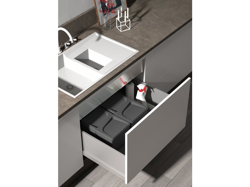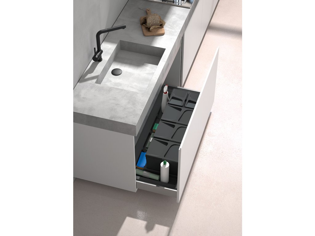 Díky čistému designu, volbě mezi víky a možnosti kombinace s dalšími prvky je tento koš ideální volbou pro praktické a hygienické řešení třídění odpadu.