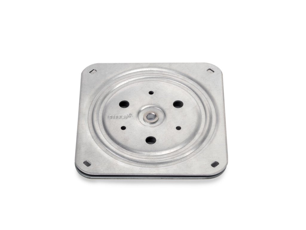 Otočná základna je robustní a univerzální komponenta vyrobená z pozinkované oceli s kuličkovým ložiskem. Se svou elegantní povrchovou úpravou a nízkou výškou pouze 11 mm umožňuje hladký, tichý a plně otočný pohyb (360°) bez jakýchkoli omezení či zarážek.
