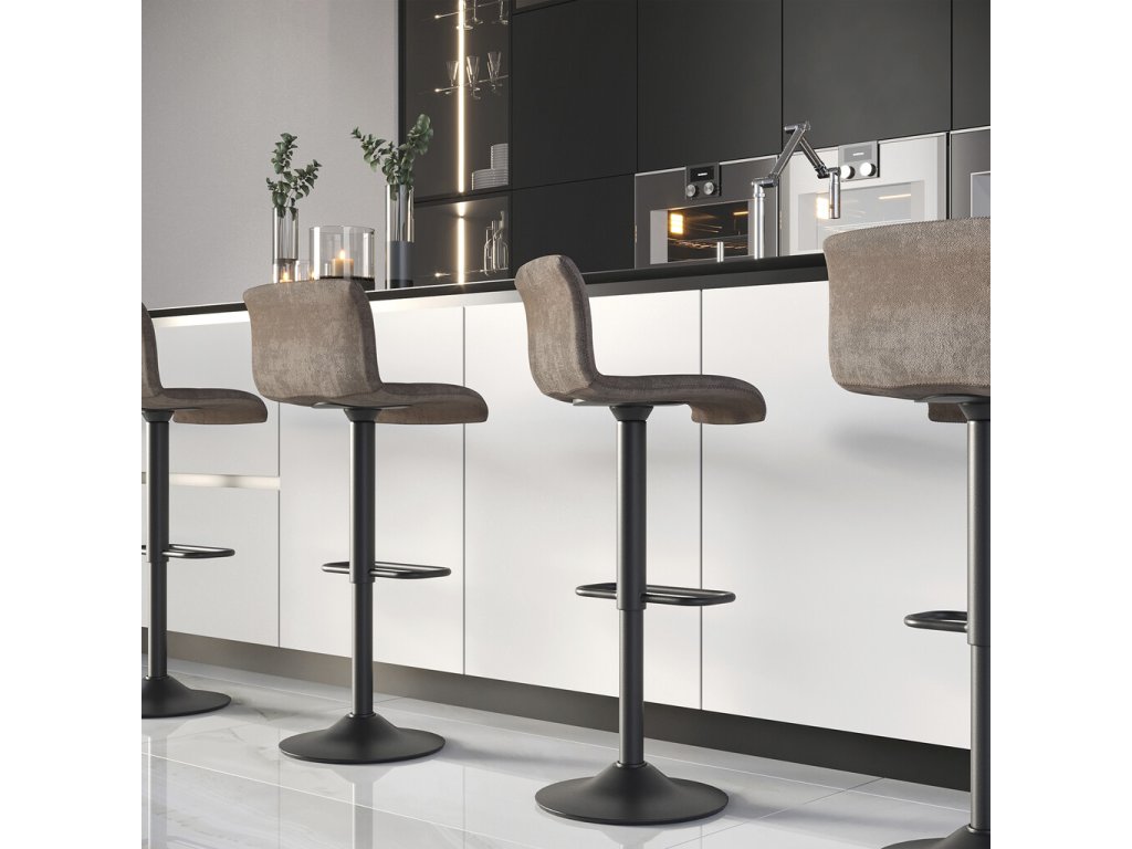 - **Otočné stoličky nebo otáčecí pulty** – upevněné na nízké kovové nebo dřevěné základně