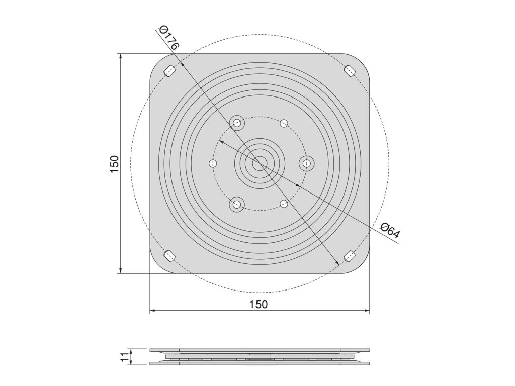 Díky průměru základny 150×150 mm je ideální pro použití ve vestavěném nábytku, policových systémech, TV skříních nebo výstavních stojanech. Je nenápadná, ale přesto precizně zajišťuje otočný pohyb bez zdvihnutí nebo skřípání.