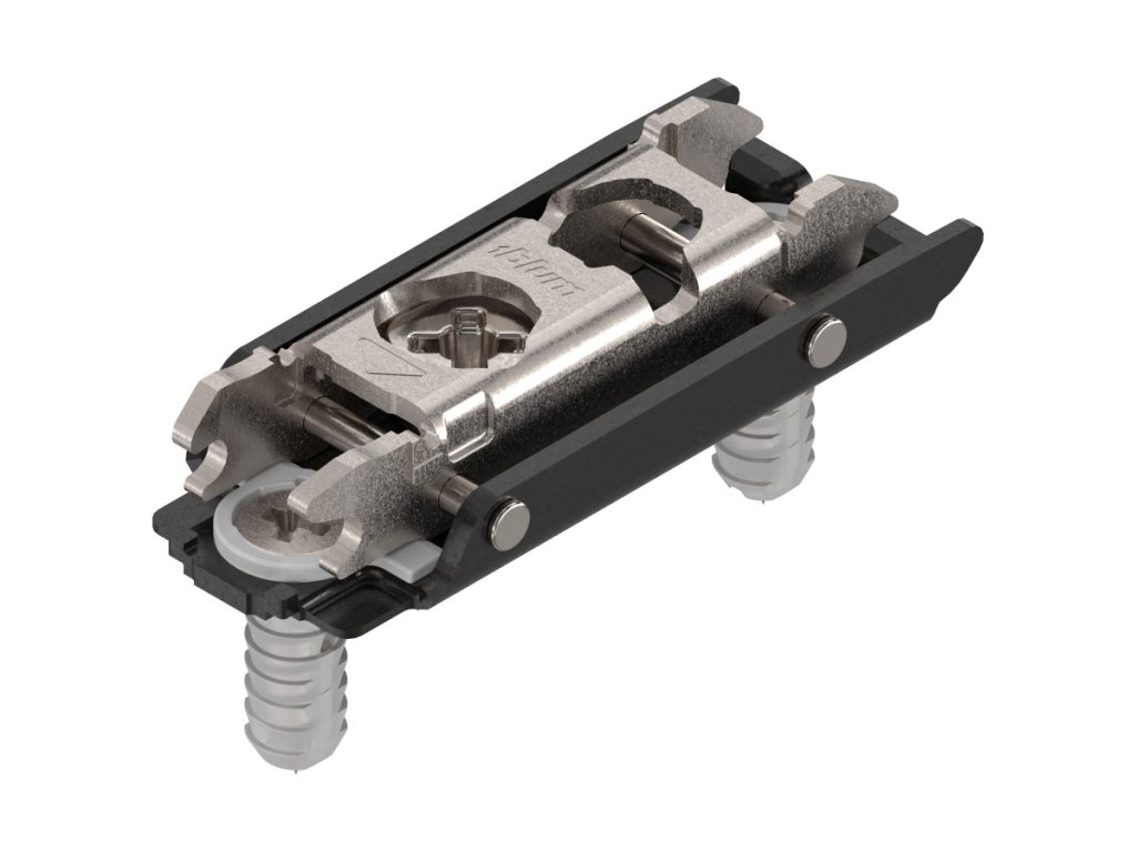 Podložka je vybavena výškovým seřízením pomocí excentru , což umožňuje jemné doladění lícování dvířek bez nutnosti zdlouhavého povolování a dotahování šroubů. Upevnění využívá systém EXPANDO – předmontované šrouby s rozpěrkami, které zajišťují kvalitní a pevné uchycení do korpusu.