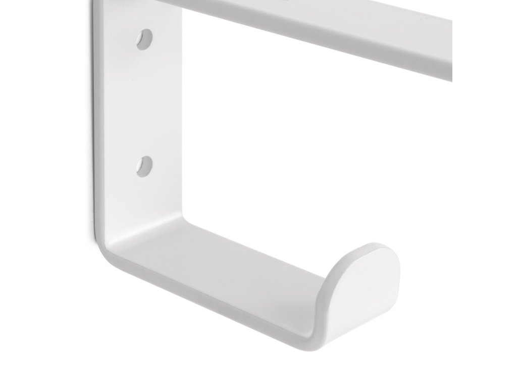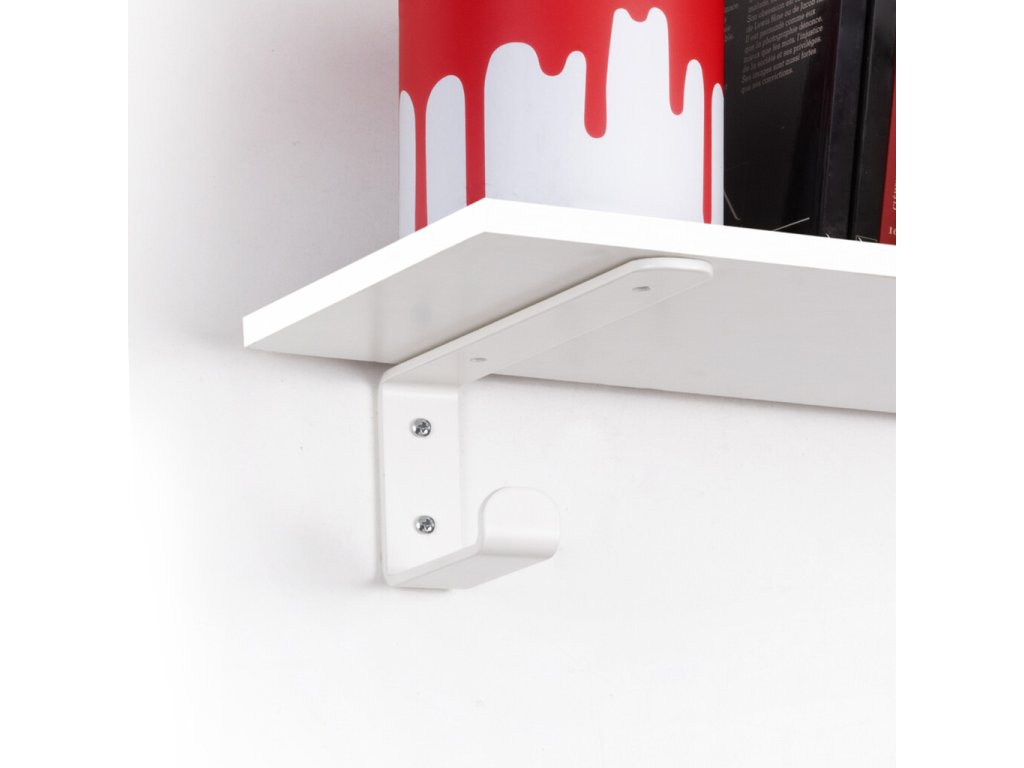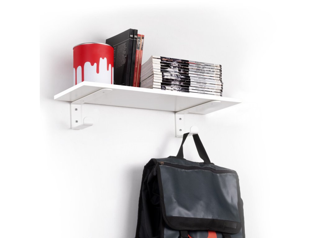 Podpěra police včetně věšáku je praktickým řešením pro upevnění dřevěných polic na stěnu. Kromě samotného uchycení police nabízí také přídavný háček (věšák).