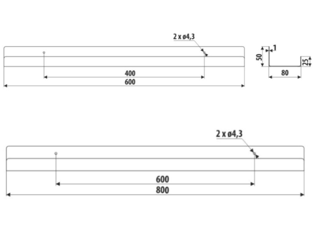 Police je dostupná ve 2 šířkách 600 a 800 mm.