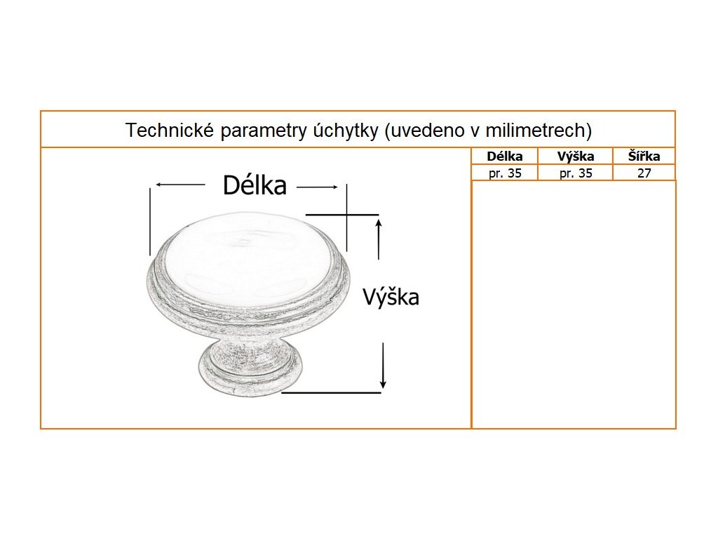 Rozteč úchytky (mm) | Knopka |
