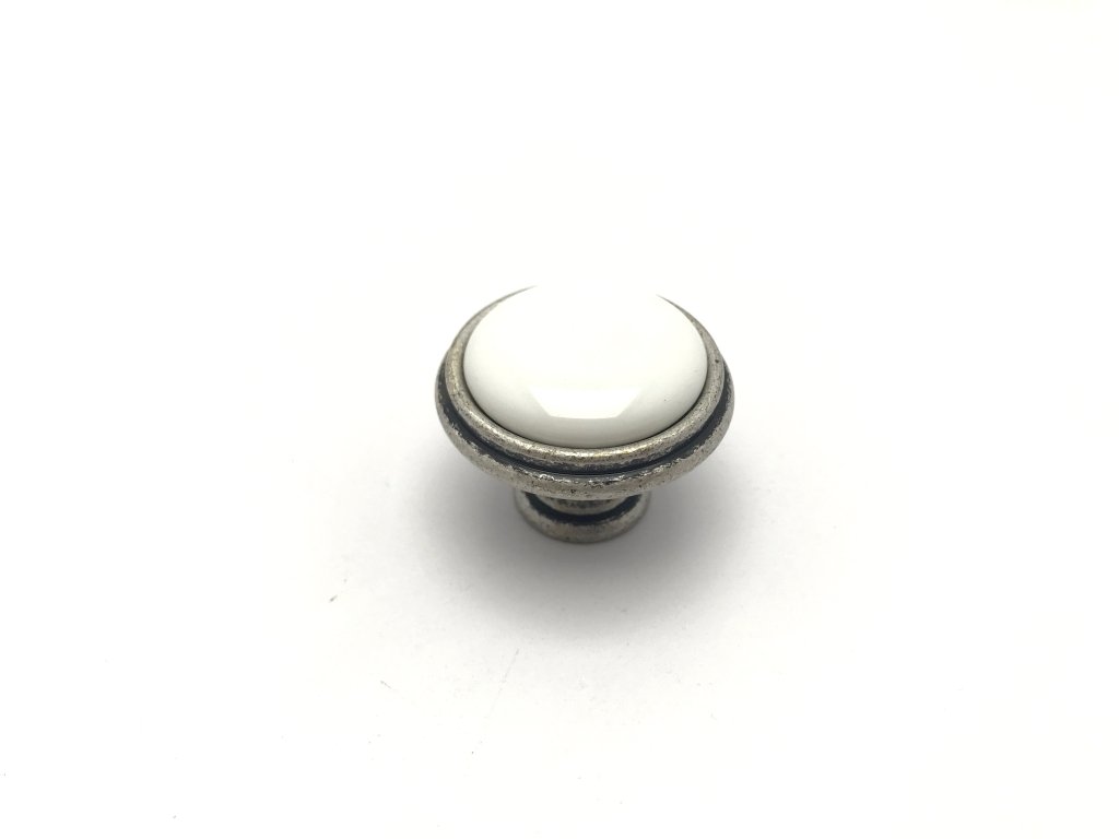 Porcelánová knopka Margarita starostříbro/porcelán bílý