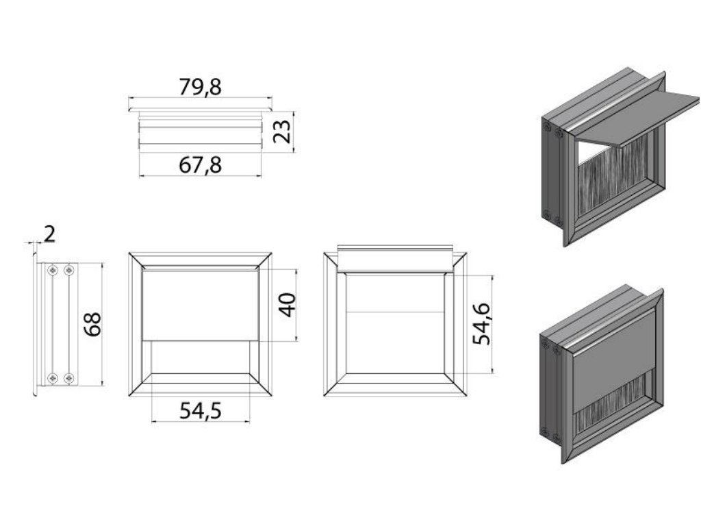 - ✔ Otevírací klapka a kartáč – umožňují diskrétní průchod kabelů bez nepořádku.