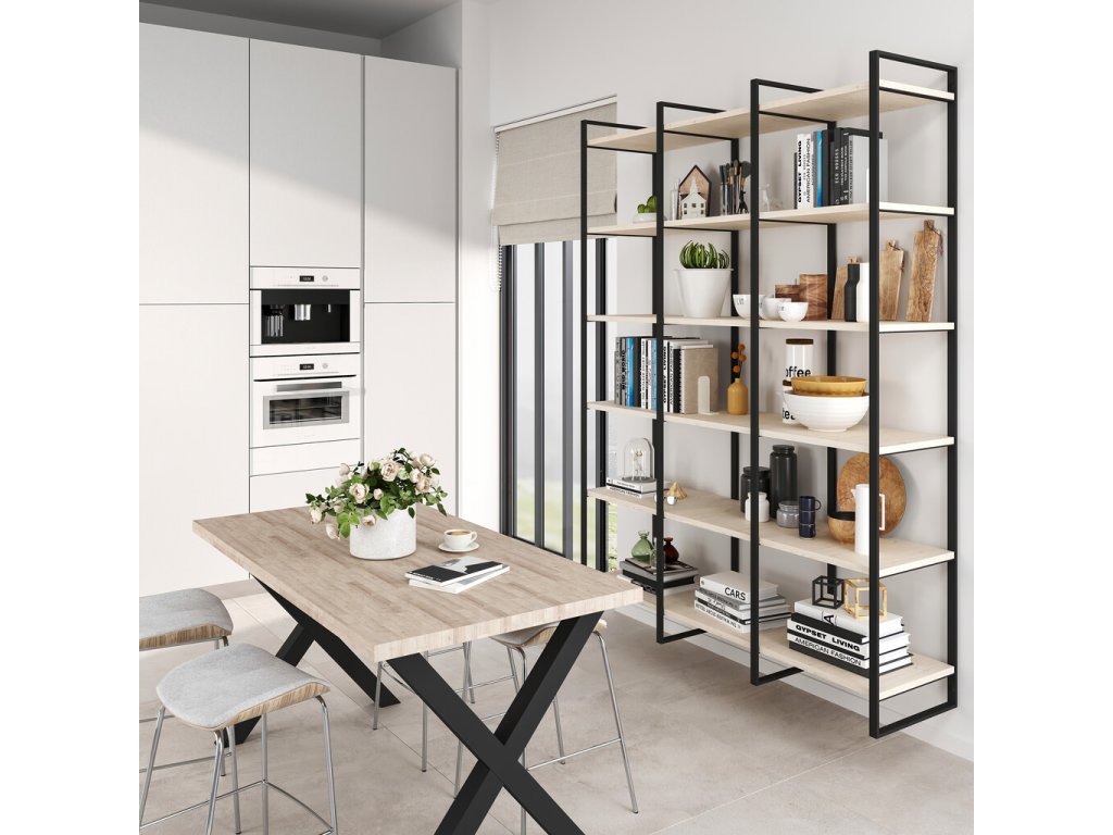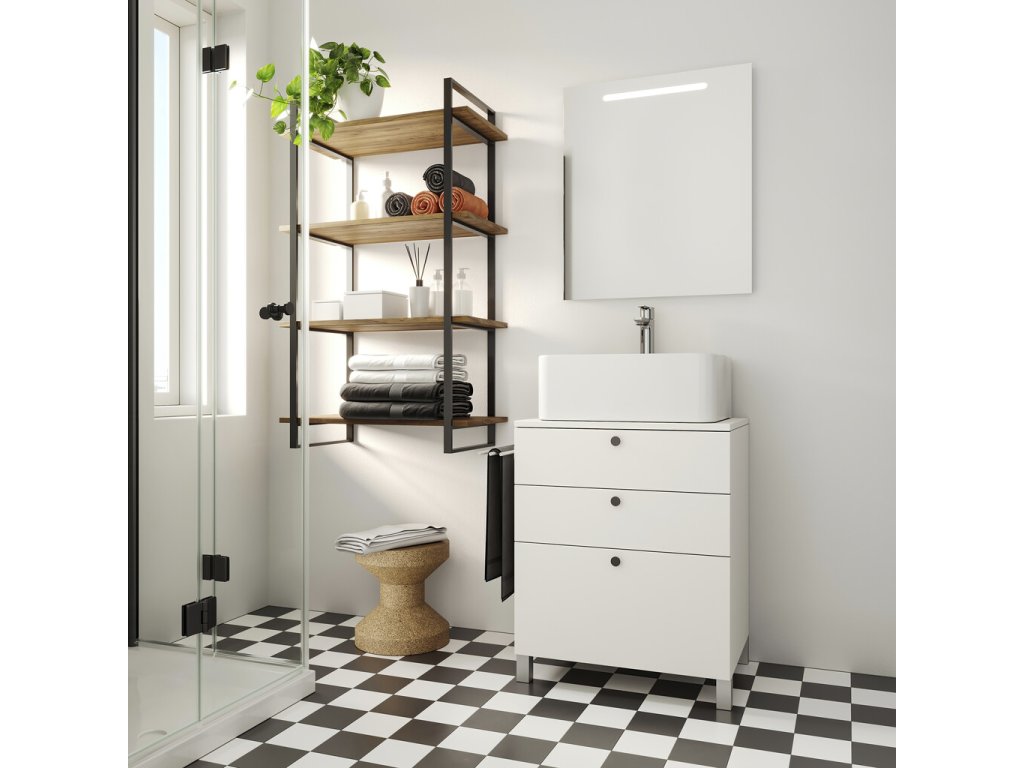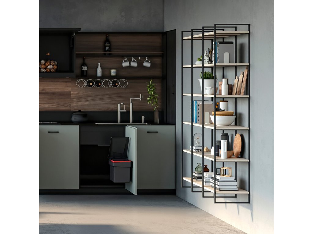 Tento rám tvoří pevnou konstrukci pro modulární sestavy polic typu žebřík. Dostupný je ve třech výškách – 830 mm, 1150 mm a 1790 mm – které lze kombinovat do různých sestav podle potřeb prostoru. Rám lze použít jako závěsný systém na stěnu nebo jako volně stojící konstrukci postavenou na podlaze. Díky spodní rektifikaci umožňuje přesné vyrovnání i na nerovném povrchu a dosažení dokonalé roviny celé sestavy.