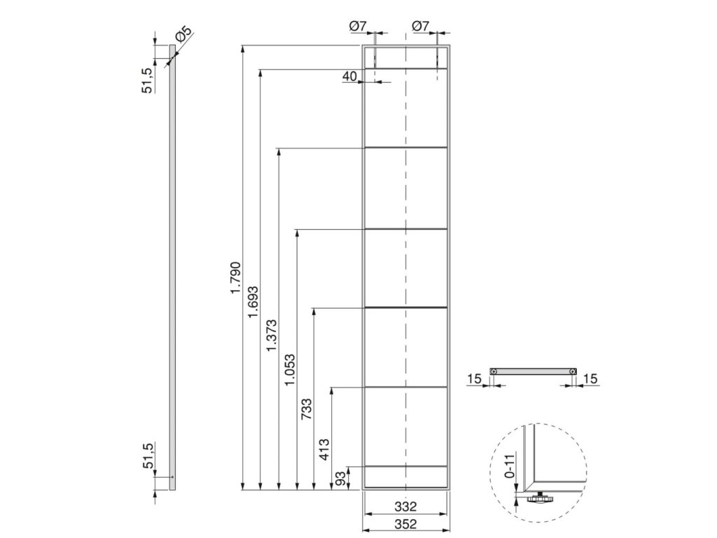 - ✔ Spodní rektifikace – nastavitelné nožičky pro přesné vyrovnání a stabilitu konstrukce u výšky 1150 a 1790 mm.