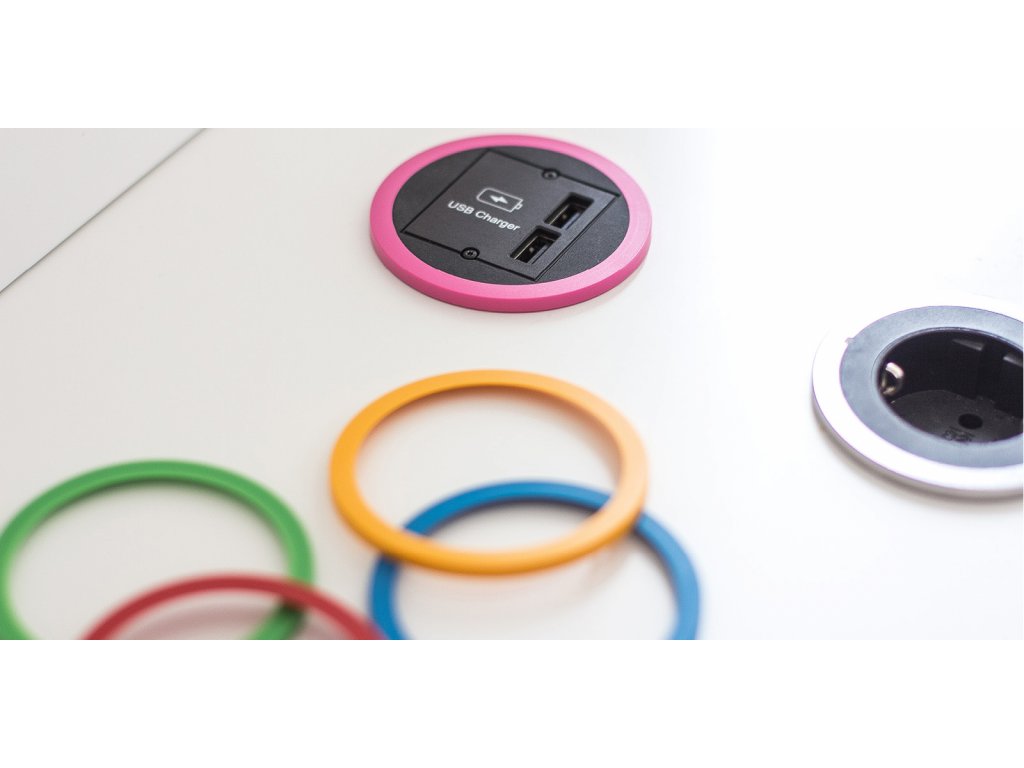 Barevné řešení zásuvek PIX. Pokud chcete dodat pestrý vzhled Vašemu interiéru, tak jsou tyto barevné kroužky vhodnou volbou.