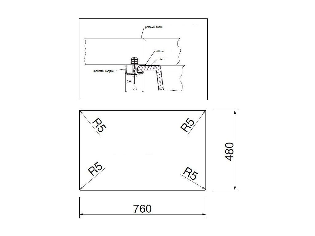 | Dřezy - Způsob montáže | Montáž shora (na desku), Spodní montáž (pod desku) |