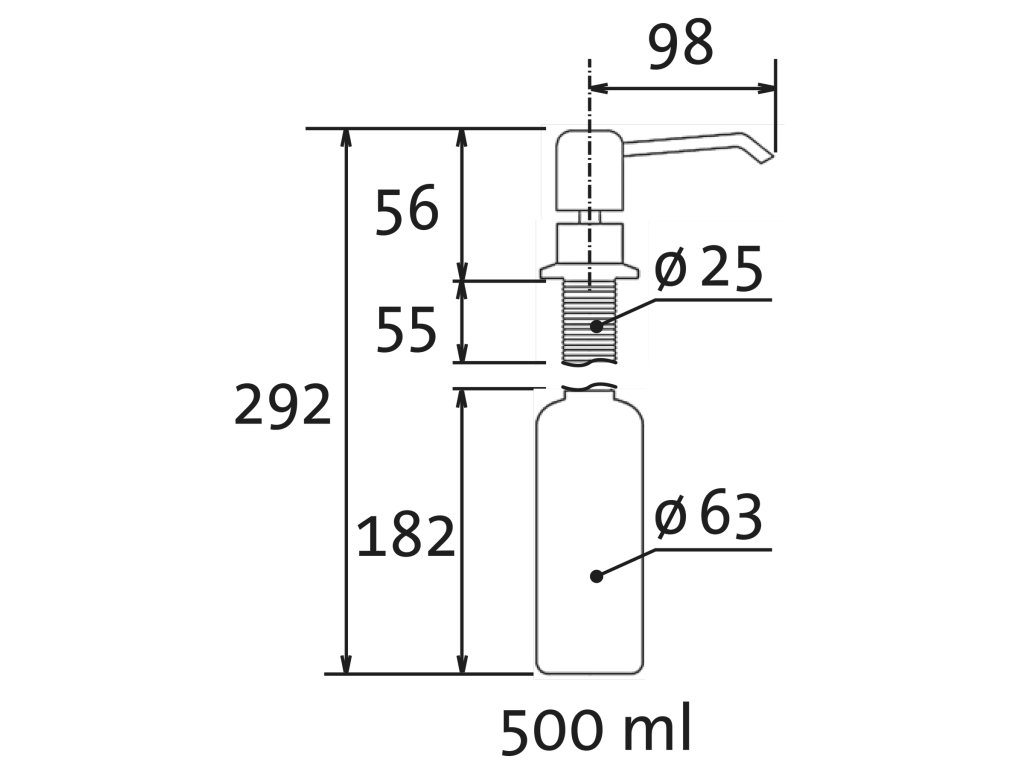 Dávkovač se montuje do standardního otvoru v dřezu o pr. 35 mm.