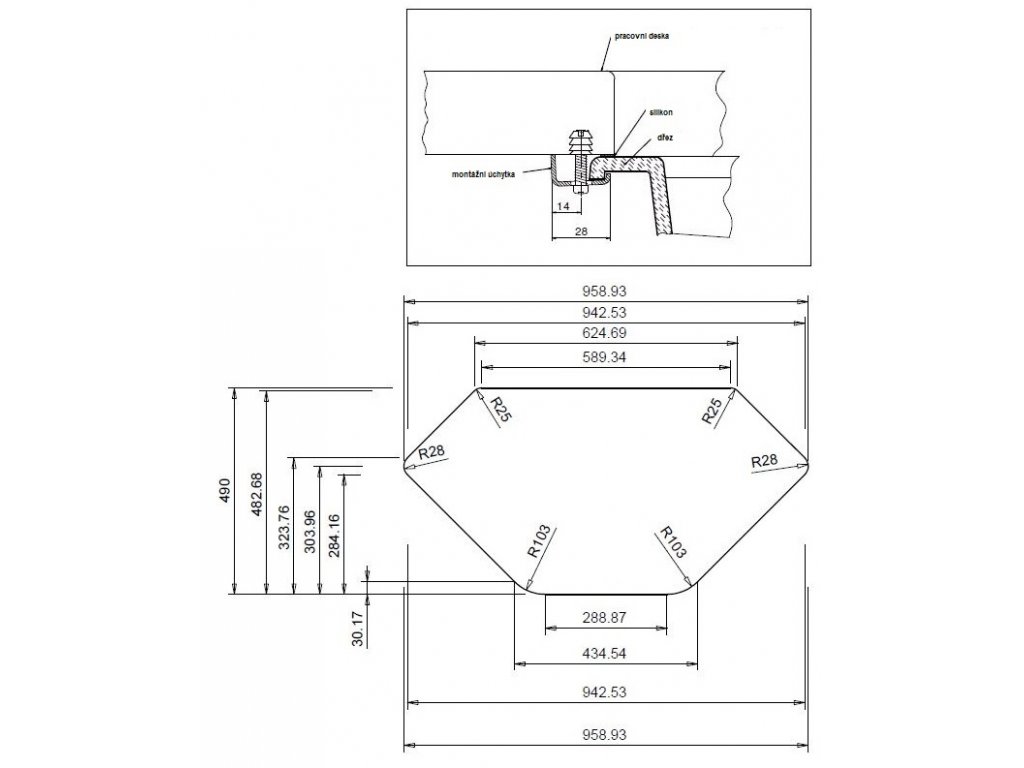 | Dřezy - Způsob montáže | Montáž shora (na desku), Spodní montáž (pod desku) |