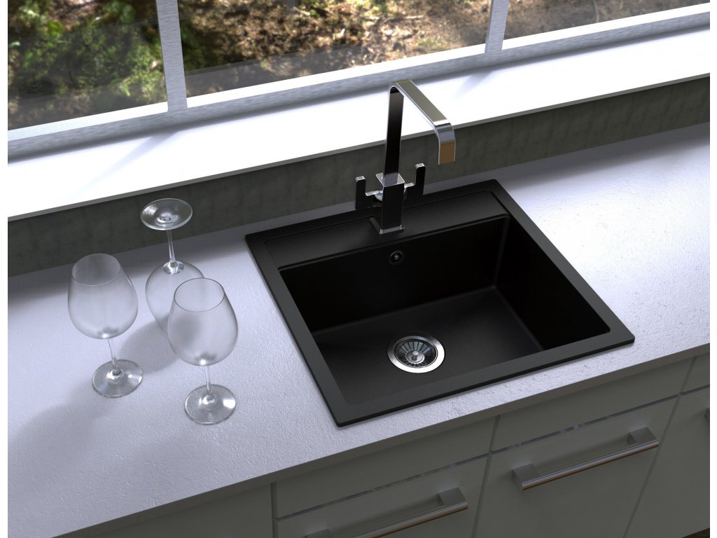 Dřez je určen pro horní i spodní montáž do pracovní desky a minimálně 600 mm široké skříňky. Pro spodní montáž (do kamenné desky) je nutné přikoupit speciální montážní sadu.