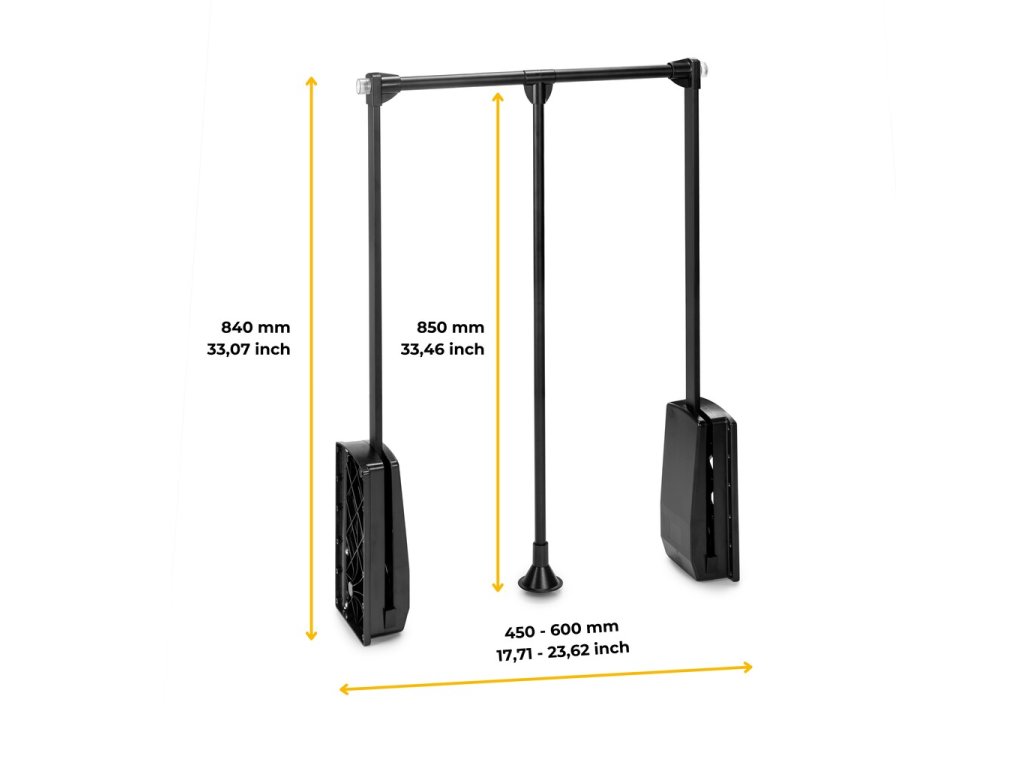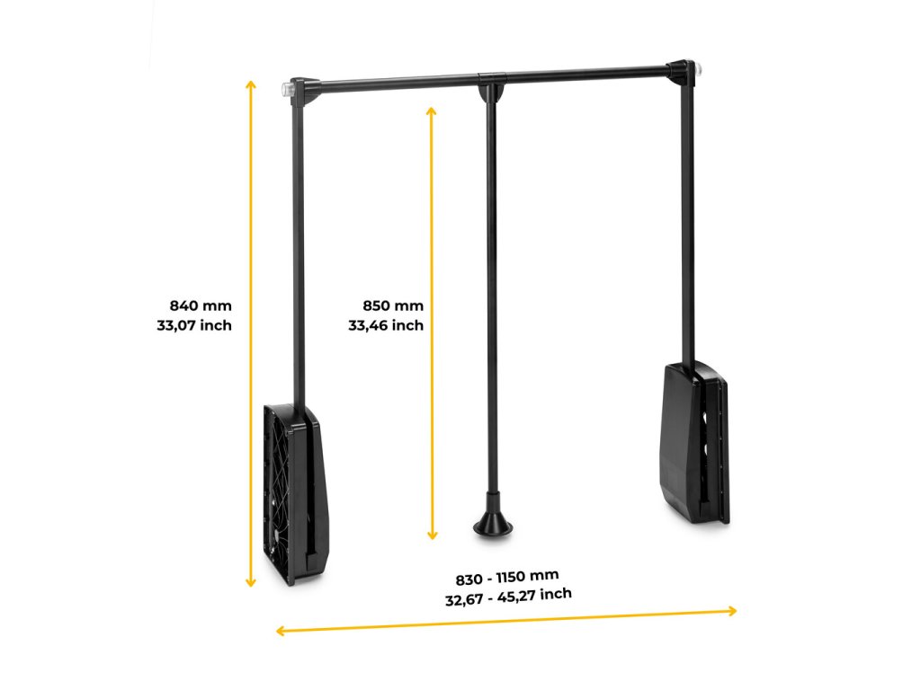 Sklopná šatní tyč ZERO, šířka od 45 cm do 115 cm, černá/černá