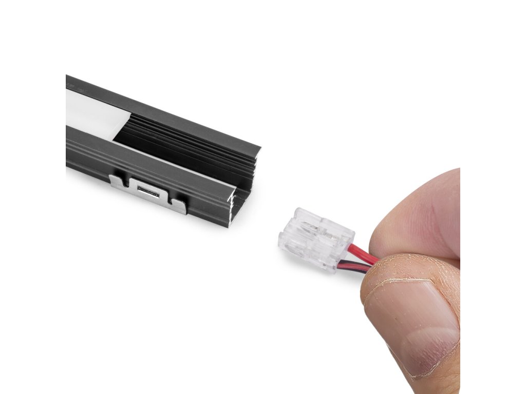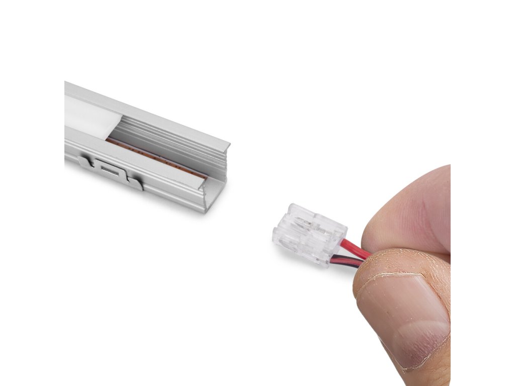Kabel je vybaven Miniled konektorem pro rychlé a bezpečné zapojení v systému 24 V DC. Součástí balení jsou 3 montážní klipy, které usnadní vedení a fixaci světla uvnitř korpusu nebo profilu.