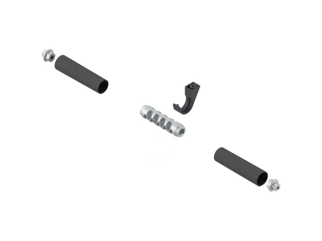 Spojka Blum 22Q080Z je určena pro propojení dvou synchronizačních tyčí systému AVENTOS HL top u velmi širokých dvířek. Umožňuje rozšířit délku synchronizačního mechanismu tak, aby byl zajištěn současný a stabilní pohyb obou ramen výklopu po celé šířce korpusu.