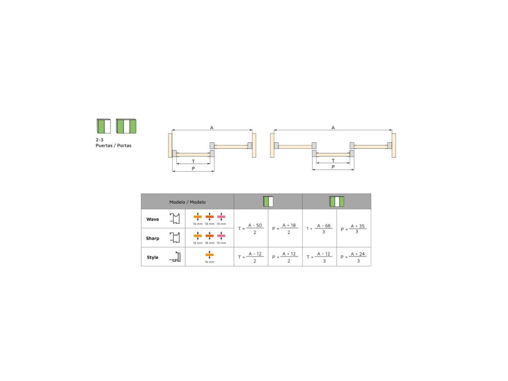 | Posuvné systémy - tloušťka dveří (mm) | Výplň 18 mm |