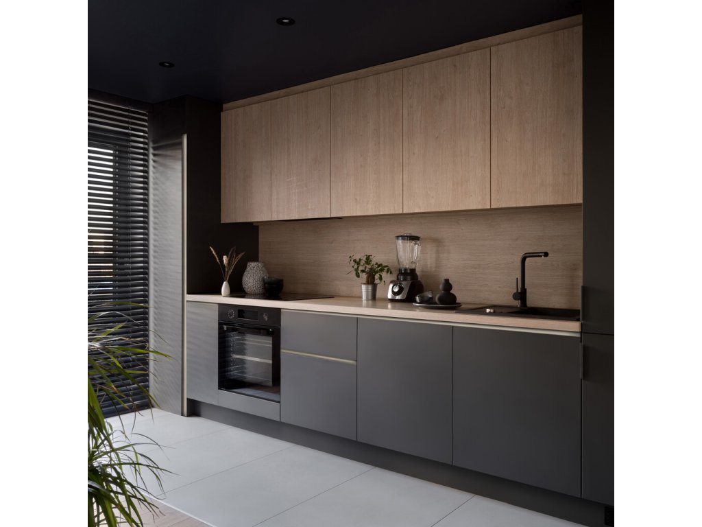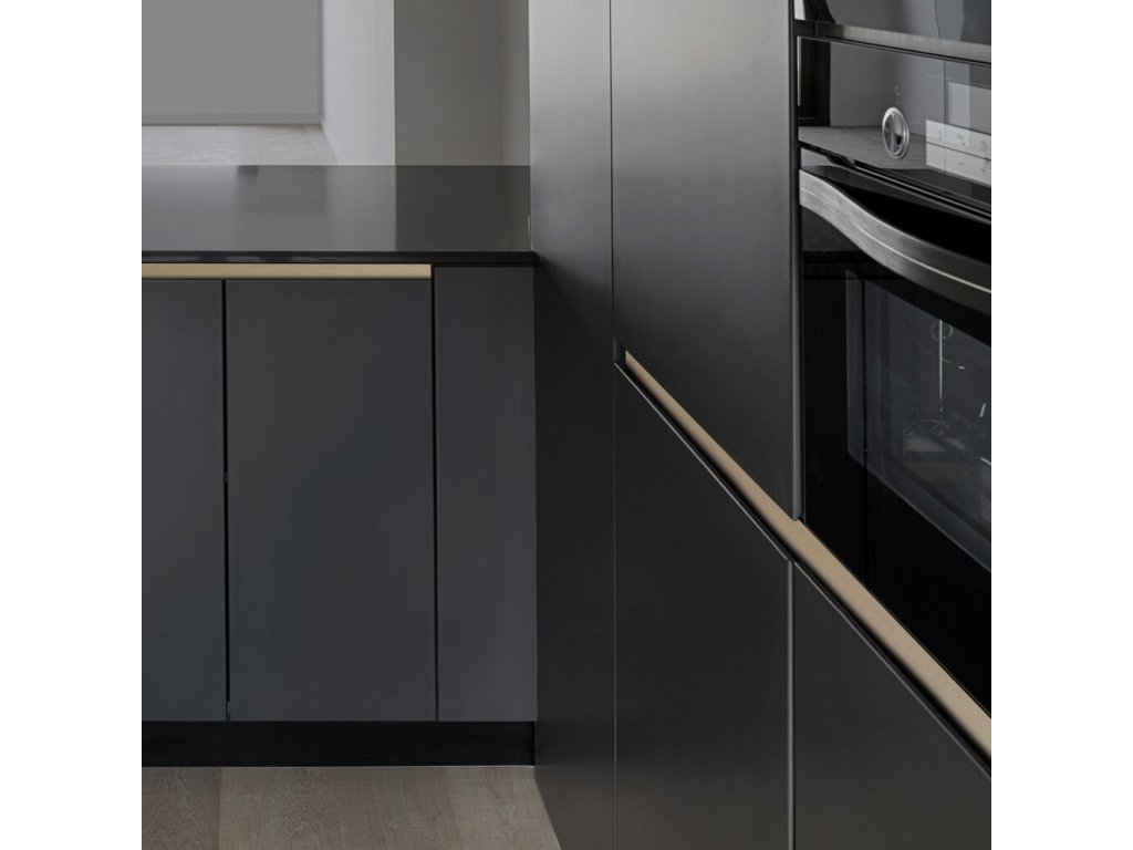 Horizontální Gola profil je elegantním řešením pro kuchyňské sestavy bez viditelných úchytek. Tento profil se osazuje u krajů nábytkových modulů a umožňuje snadné otevírání dvířek pouhým zatažením za přední hranu. Design zachovává minimalistickou estetiku a čisté linie kuchyně, aniž by bylo nutné instalovat klasické úchytky.