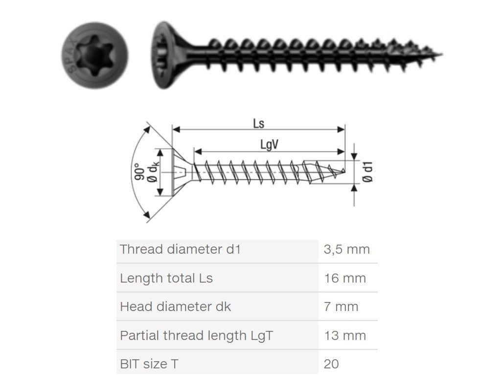 › Spojovací kování › Vruty › Vrut SPAX 3,5x16 TORX zápustná hlava - černý