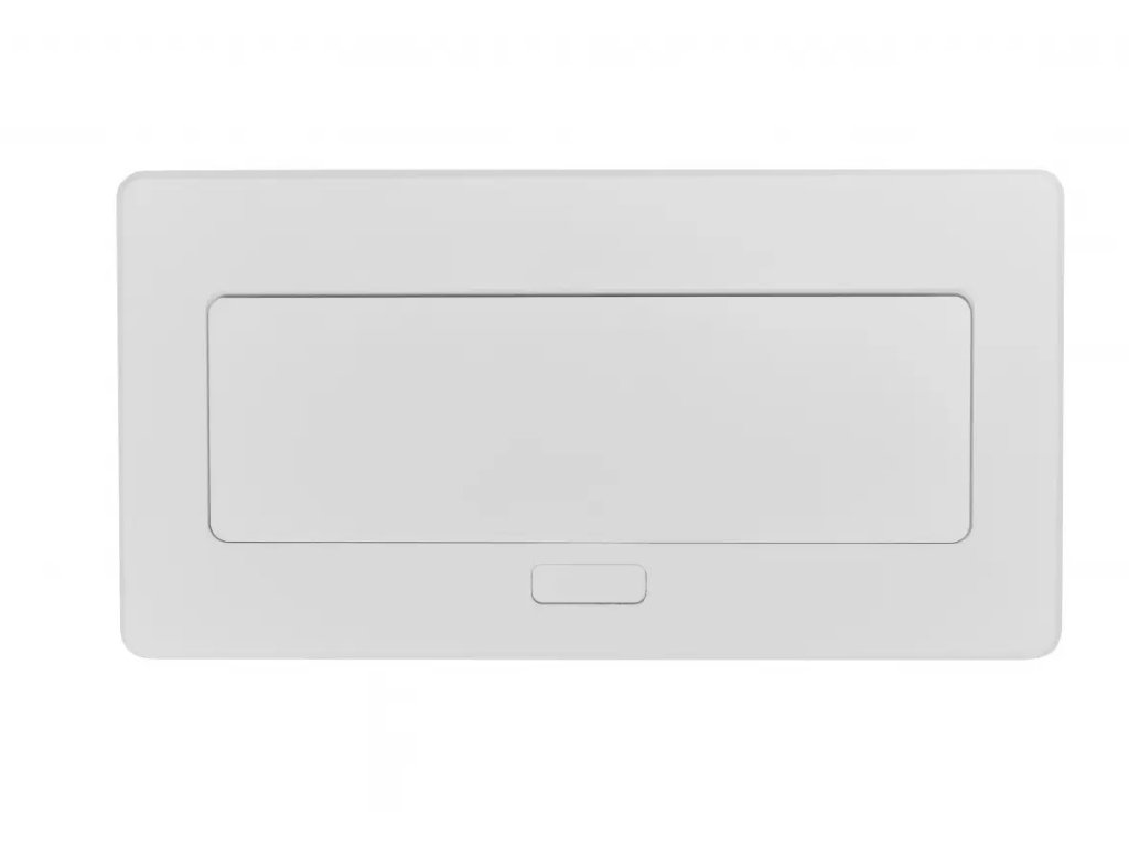 Zásuvka s moderním a ergonomickým designem pro instalaci do pracovního stolu nebo nábytku.