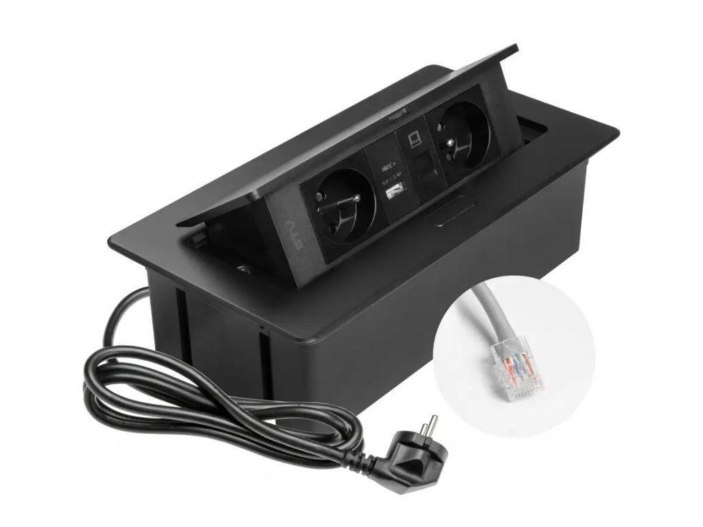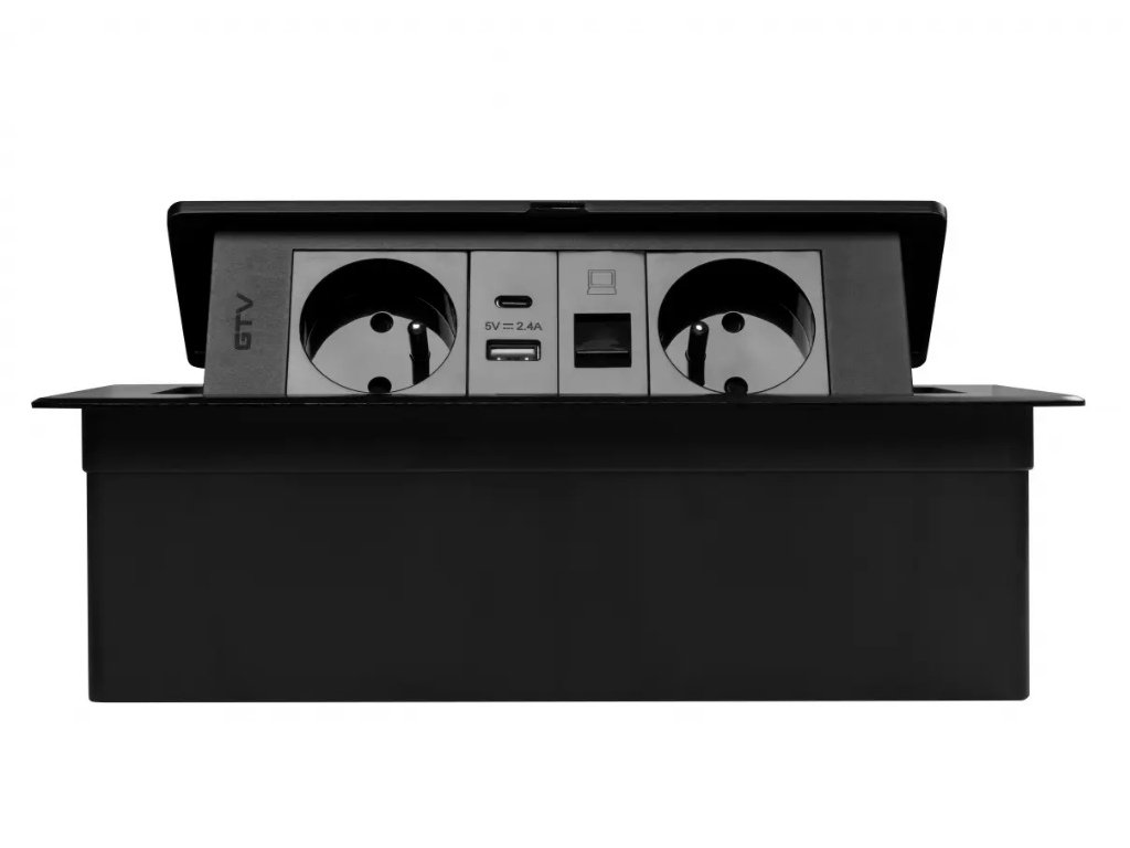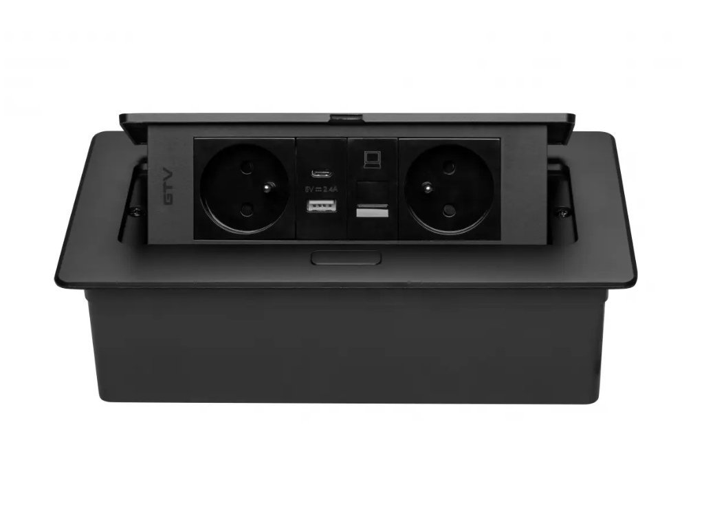 Výklopná zásuvka MULTIBOX 2x230V + USB nabíječka A/C + RJ45 - černá