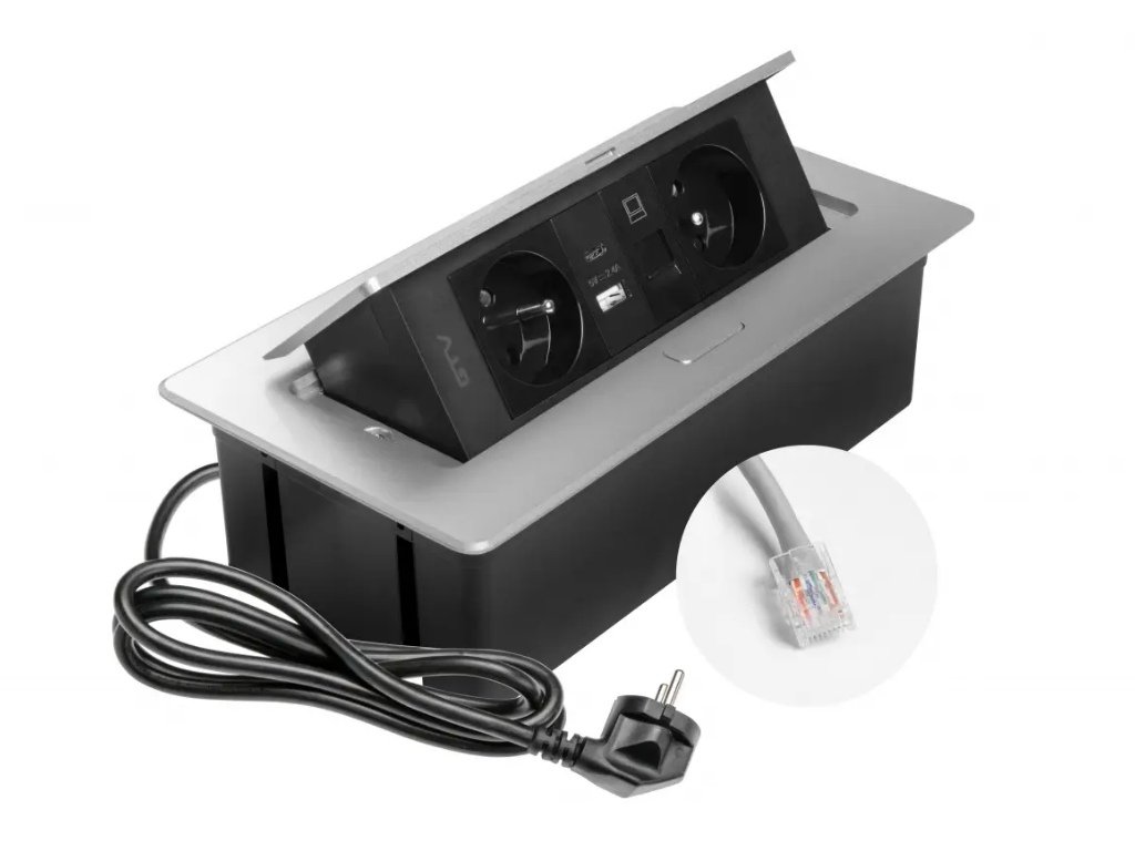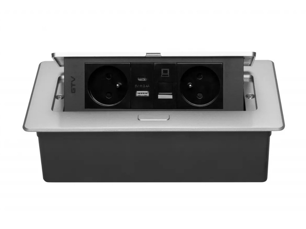 Výklopná vestavná zásuvka MULTIBOX s USB nabíječkou a RJ45 - hliník