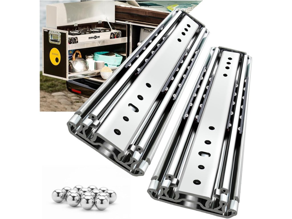 Výsuv je dimenzován na vysokou zátěž zásuvky, to až 100 Kg. Výsuv je dostupný v délce až 1 100 mm, jedná se o extrémně dlouhý plnovýsuv.