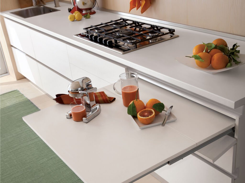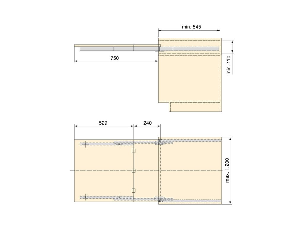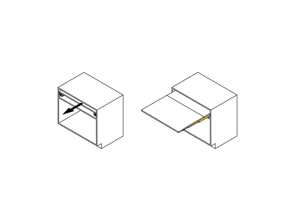 je inovativní systém výsuvných pojezdů navržený pro skryté výsuvné stoly, ideální pro kuchyně, jídelny či multifunkční prostory s omezeným místem. Umožňuje snadné a bezpečné vysunutí pracovní plochy o délce 750 mm z prostoru. Instaluje se do prostor, kde by běžně byl zásuvkový modul.