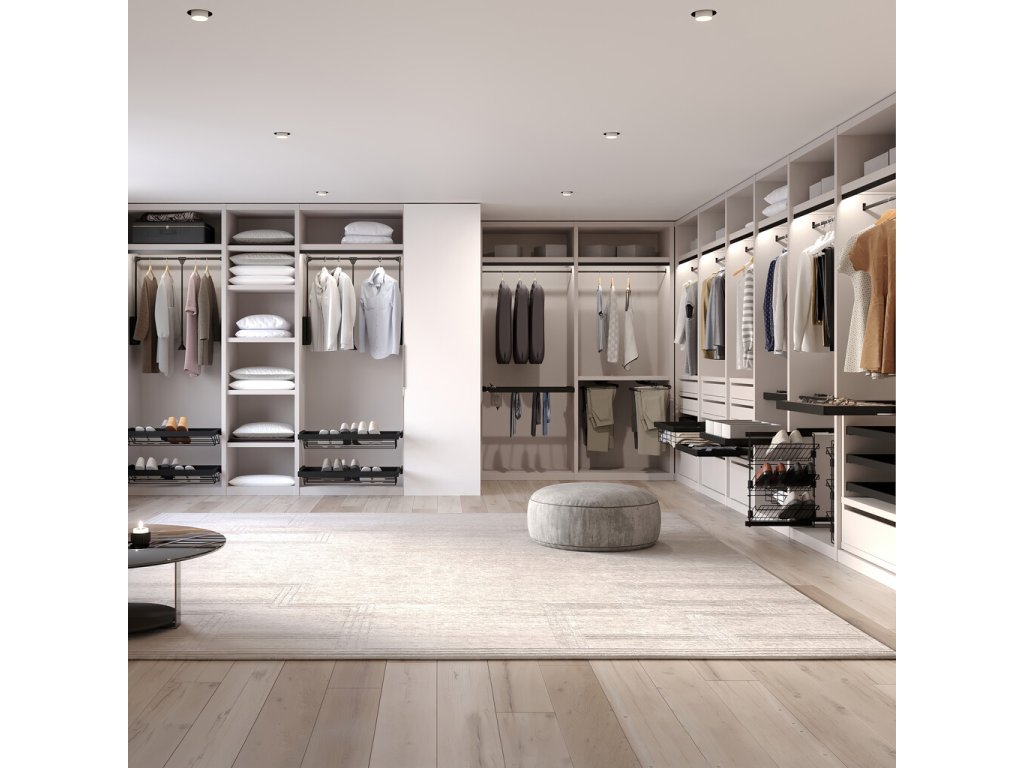 Prémiová sada pro organizaci zásuvek ve vestavěných skříních a šatnách spojuje styl, funkčnost a dokonalé využití prostoru. Tato sada obsahuje organizer‑zásuvku a rám se soft‑close výsuvy, který umožňuje plynulé, tiché zavírání.