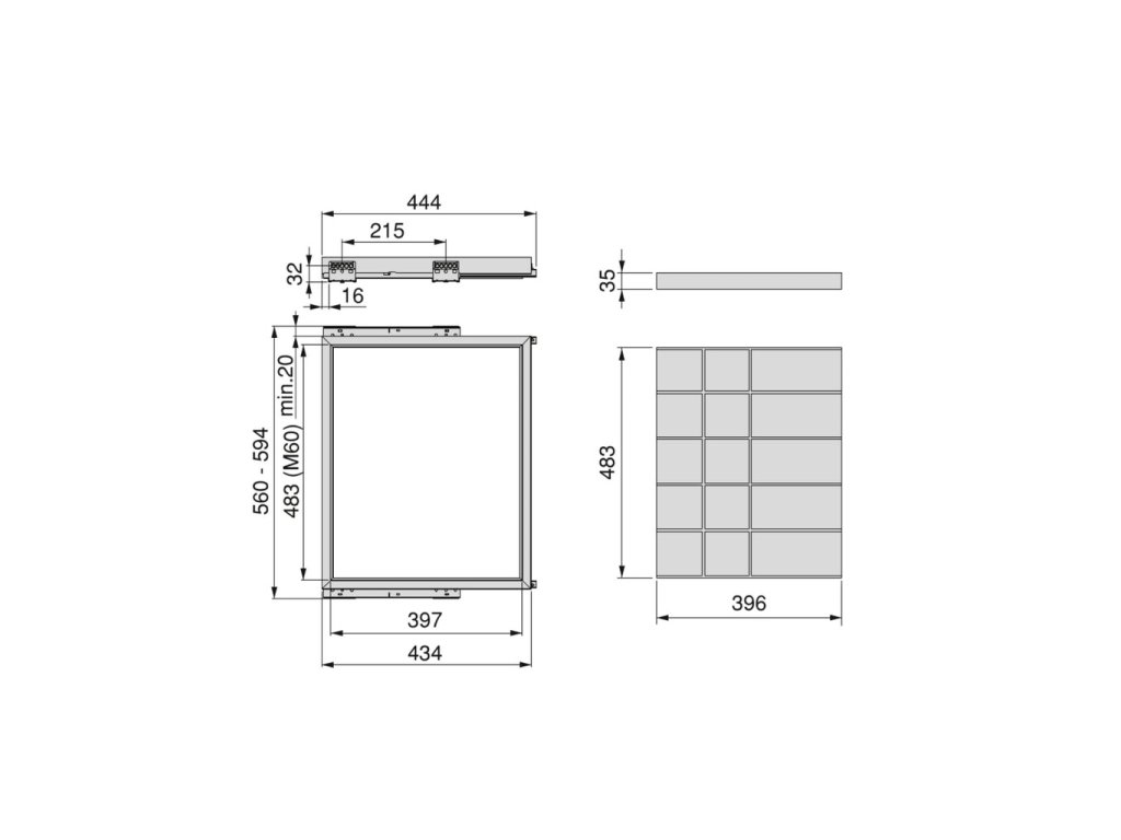 - Součást balení: rám + vodící lišty, zásuvkový organizer, montážní materiál