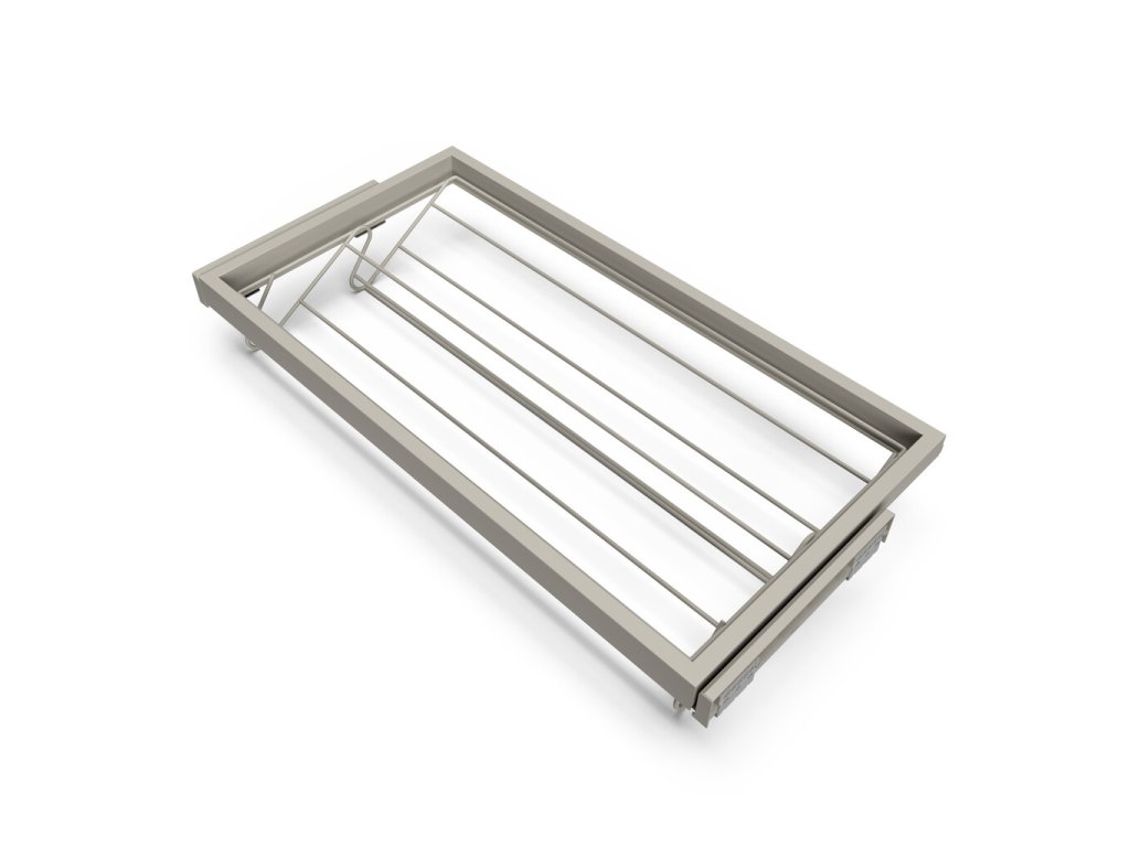 Proměňte vnitřek šatní skříně v dokonale přehledné místo. Tento výsuvný botník s pevným kovovým rámem a párem kvalitních výsuvů s tlumeným dovíráním (soft-close) zajistí, že se obuv vysune plynule až před vás. Díky plnému výsuvu máte přístup i k zadní řadě bot bez složitého přerovnávání. Elegantní povrch v barvě béžová zapadne do moderních i klasických interiérů.