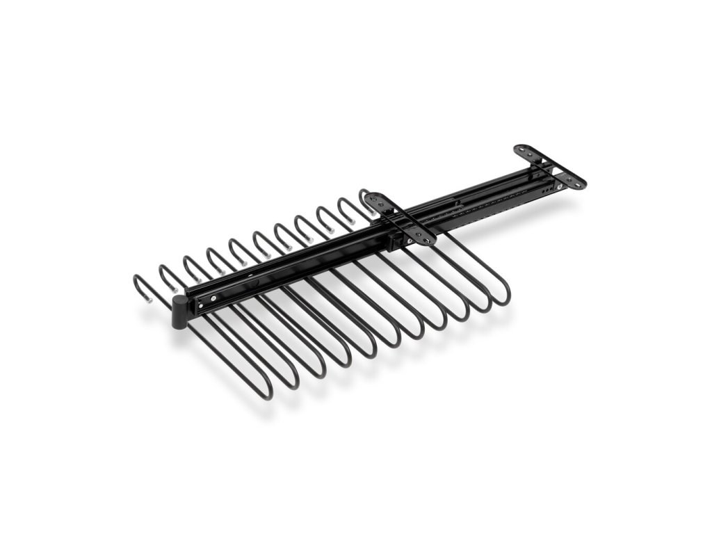 Výsuvný věšák na kalhoty – 11 tyčí, plný výsuv, černě lakovaná ocel